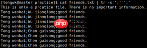 tr命令可以处理标准输出内容,其中-d删除指定内容,-s替换指定内容。例如,将“:”替换为“;”的方法如下: