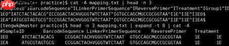 expand命令可以处理标准输出内容,其中-t后面跟随数字,通常一个tab键可以用8个空格键替换。使用示例如下: