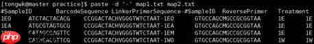 paste命令可以按行将两个文件整合为一个文件,而不需要按照关键字。其中-d后面为分隔符,默认为tab。使用示例如下: