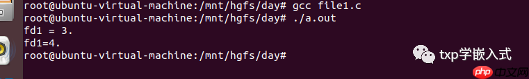 注解:这里主要是说了dup函数在旧的文件描述符复制会返回一个新的文件描述符,并且这个新的文件描述符是在连续接着旧的文件描述(比如旧的文件描述符是3,新的文件描述符则是4)。下面我们还是来看代码示例和试验现象: