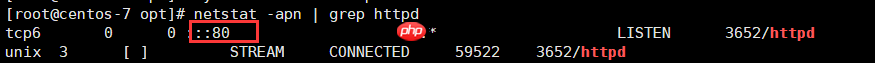服务启动后,可以通过netstat命令查看httpd的端口号:
