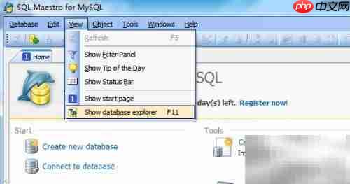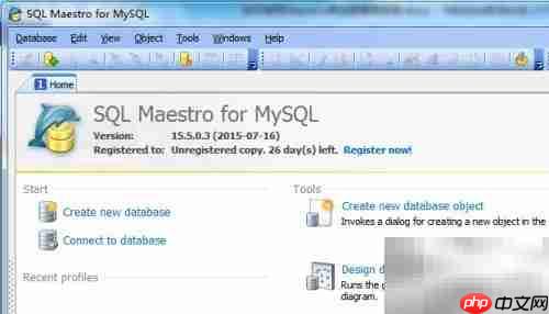 1、打开SQL Maestro程序,并建立与MySQL数据库的连接,以便进行后续操作。