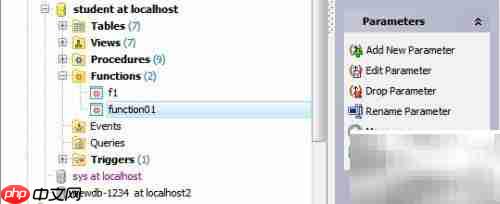 4、在数据库浏览器中定位到目标函数所在的数据库对象区域,准备执行生成定义语句的操作。