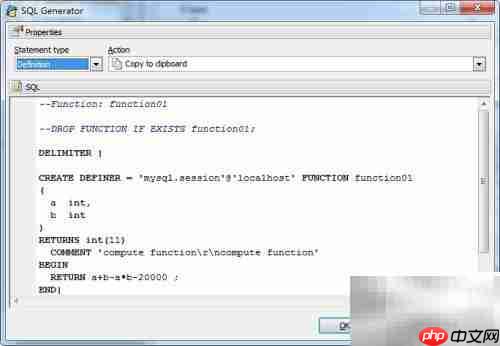 5、在函数列表中,右键单击所需函数,在弹出的上下文菜单中选择生成脚本的相关选项,即可获取该函数的完整定义语句。