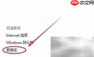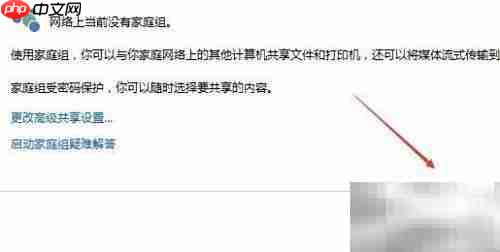 1、 在Win11桌面环境中,右键点击“网络”图标,选择“属性”,进入网络和共享中心后,点击左下角的“家庭组”选项。