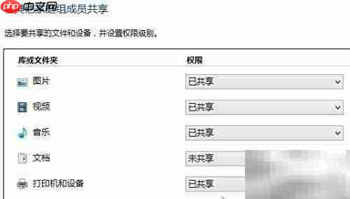 4、 根据需要选择希望共享的内容权限,如文档、图片、等,确认后点击“下一步”。