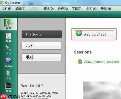 1、 打开Qt Creator,点击“新建项目”以启动项目创建流程。