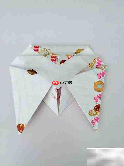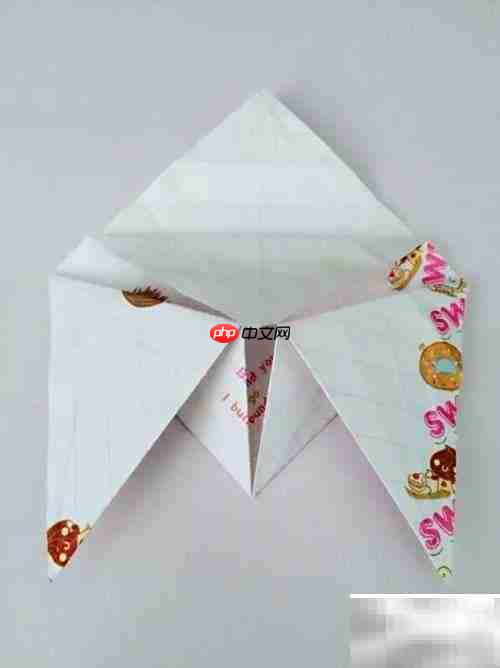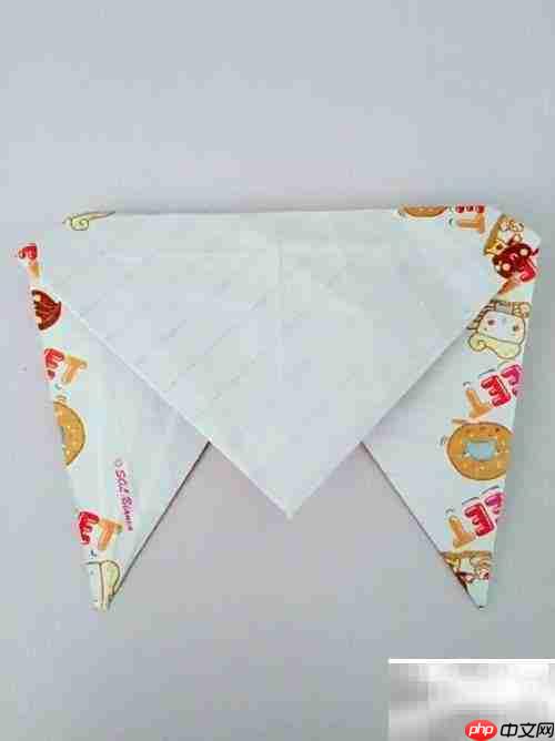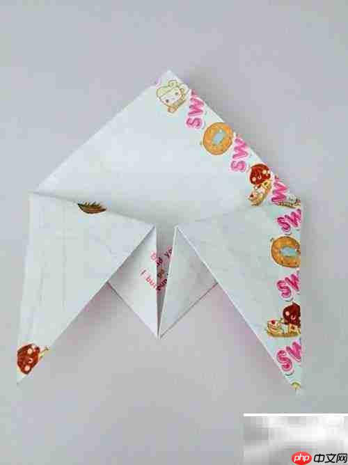 9、将左右两个角稍微向中间位置折叠,形成身体轮廓