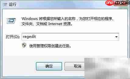 1、 使用快捷键打开“运行”对话框,输入regedit并按回车确认;也可在开始菜单搜索栏中输入regedit,启动注册表编辑器,界面如图所示。