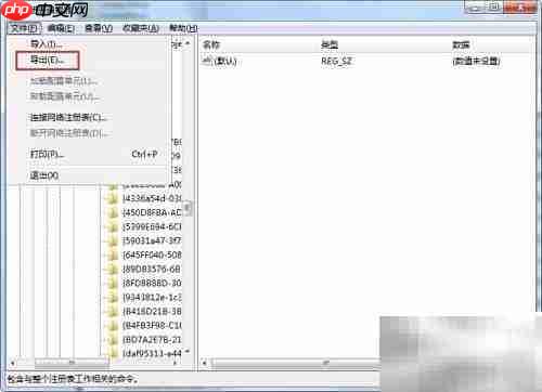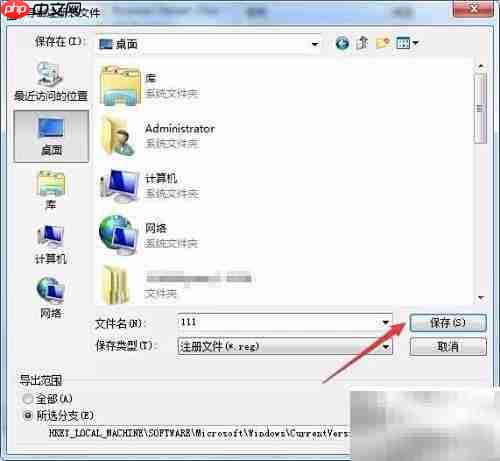 10、 进入目标位置后,右键点击该项,选择“导出”,将该注册表节点保存至桌面,以便在误操作时可导入恢复原始状态。