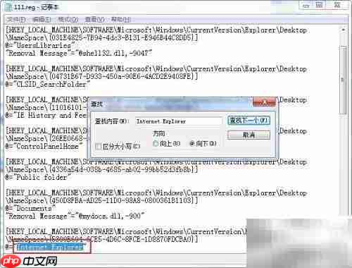 11、 使用记事本打开导出的.reg文件,利用查找功能搜索“Internet Explorer”,定位包含该名称的相关条目,并记录其对应的控件ID编号。