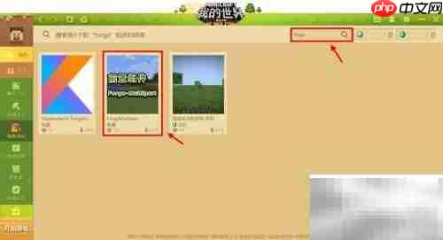 于搜索框内键入“forge”,在搜索结果中找到需要的Forge版本,点击安装按钮开始配置。