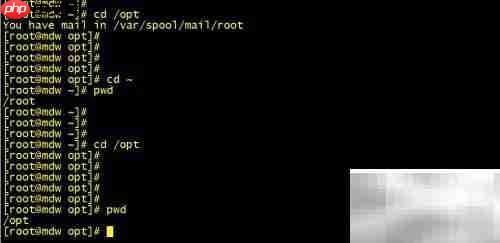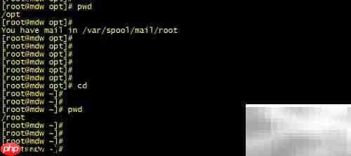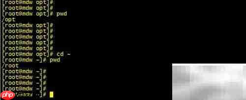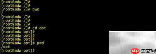6、例如先进入 /opt 目录,随后切换至主目录,若需再次访问 /opt,只需重新输入 cd /opt 即可迅速返回。
