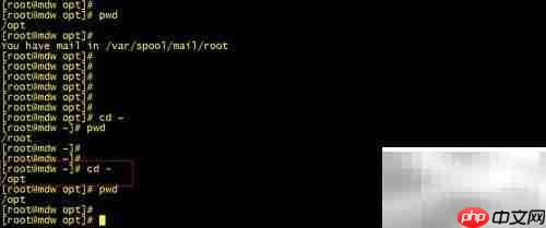 7、使用 cd – 命令可实现在最近两个目录之间快速切换,特别适合在深层路径间来回操作,极大提升了导航效率。