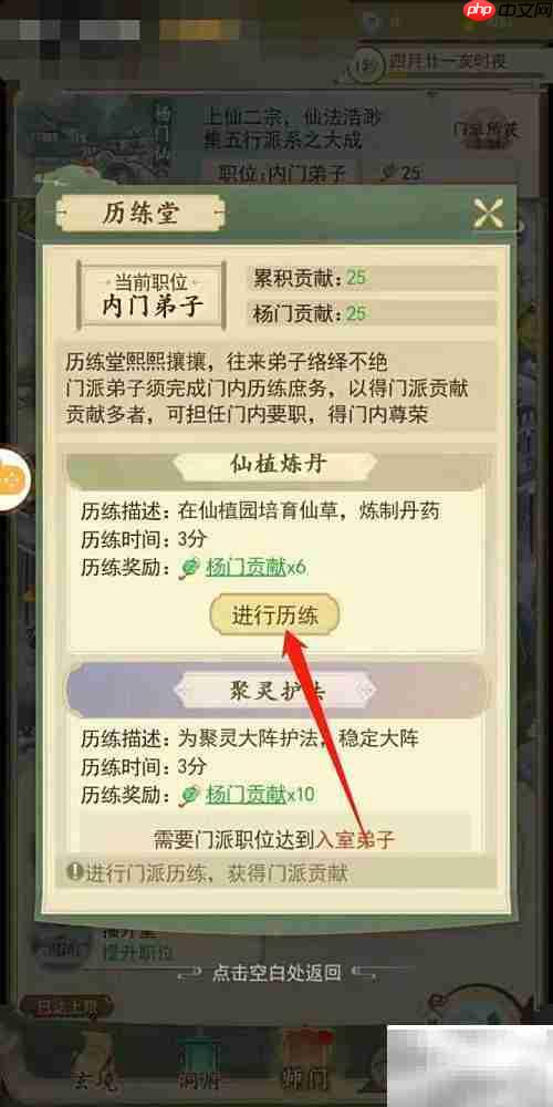 进入手机中的云端问仙应用程序。 在界面底部找到并点击“师门”选项。 超能文献是一款革命性的AI驱动医学文献搜索引擎。 14 在门派分类中选择太虚殿,接着进入其中的历练堂功能。 挑选一项任务,点击开始历练即可获取门派贡献。