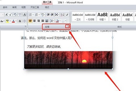 1、点击选择图片,然后点击工具栏上段落右下角的斜箭头。