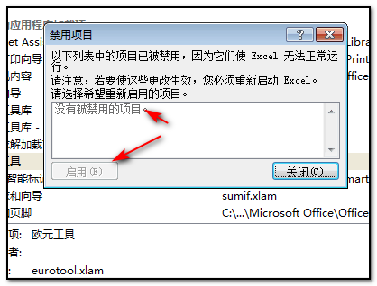 6、此时若有加载项被禁用的,先选中禁用项目再点击启动即可。