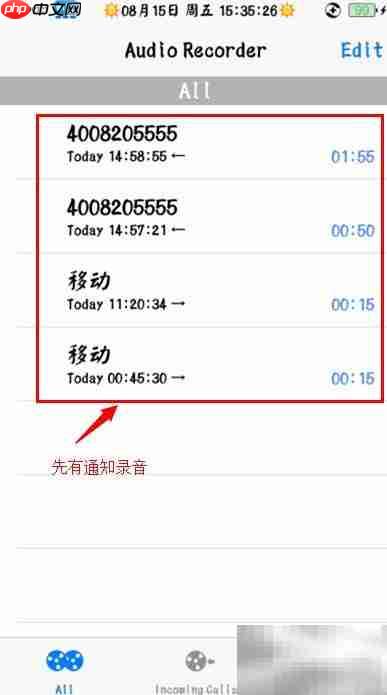 1、首先确认你的iPhone已完成越狱,并成功安装了Audio Recorder插件。打开录音应用界面,若能看到已录制的通话记录,则说明环境已准备就绪,可以开始下一步操作。
