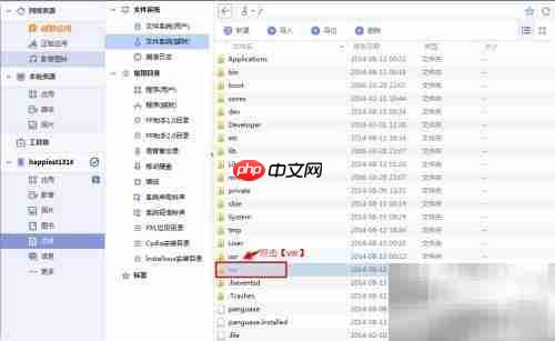 4、在右侧目录列表中找到“var”文件夹,双击进入。