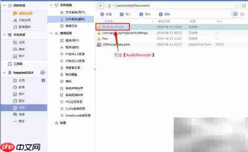 7、双击打开该目录中的应用程序数据文件夹,通常以Bundle ID命名,如“com.example.AudioRecorder”。