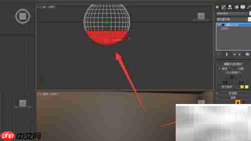 2、 选中该球体后,为其添加“编辑多边形”,进入“面”层级,删除如图所示的特定面部分。