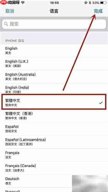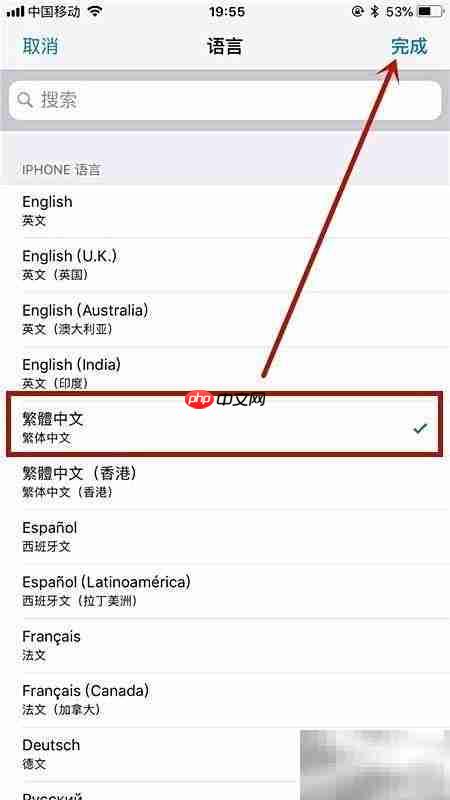 5、 在列表中选择“繁體中文”,然后点击完成确认添加。