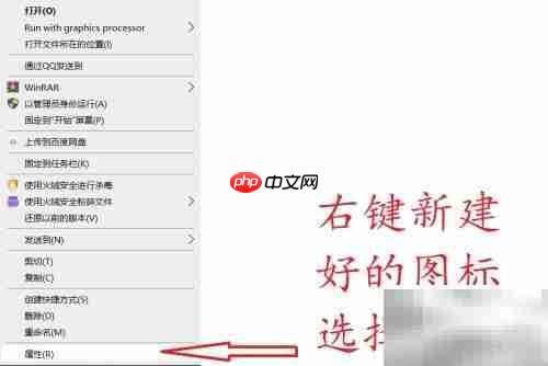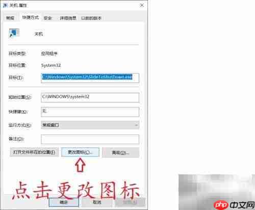 7、 右键该快捷方式,进入“属性”,点击“更改图标”按钮。