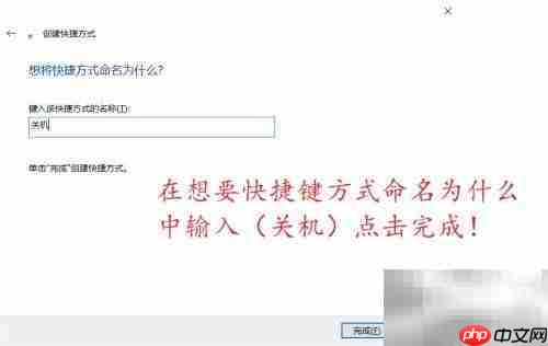 6、 将快捷方式命名为“关机”,完成后点击“完成”。