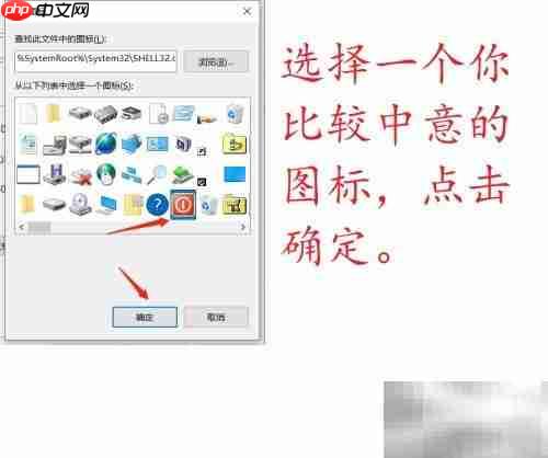 9、 从图标库中选择一个喜欢的样式,点击“应用”并确认更改。