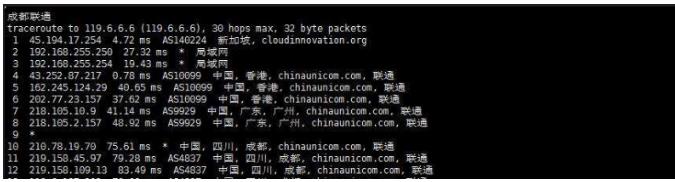 联通网络去程先走的AS4837优化线路,然后再走的AS9929的联通VIP优化线路,相当的给力。线路也是通过香港节点后直连新加坡机房的。