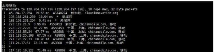 移动网络同样是通过香港节点后直连新加坡机房的。