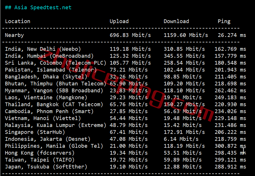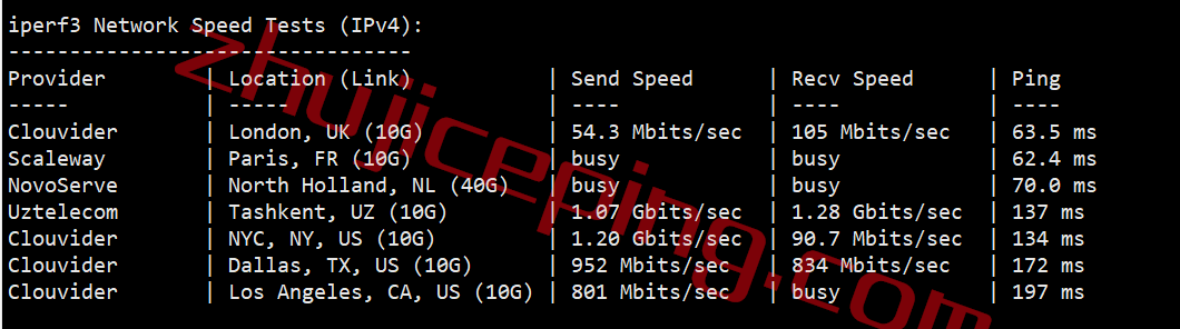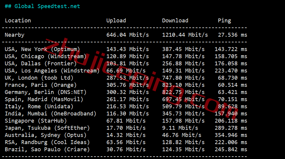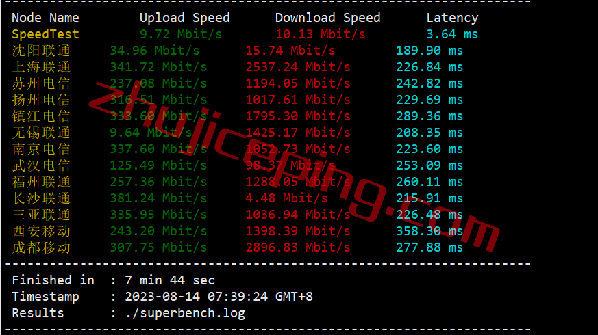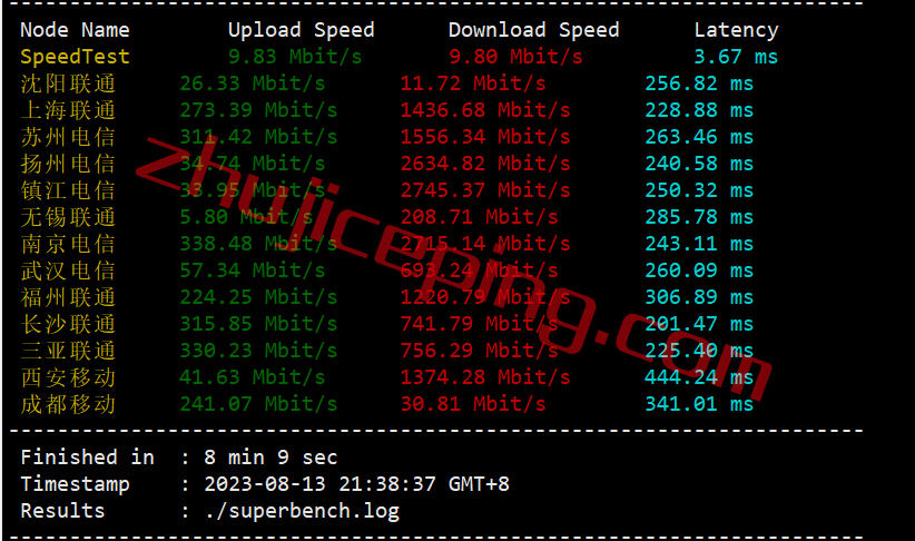 用speedtest在国内的三网节点跑一下上下行带宽的测试,大致数据: