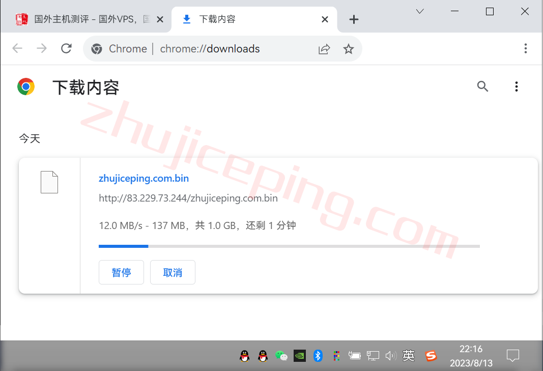 存放在云服务器上面的文件,广州联通家庭带宽直接用浏览器下载文件,大致速度: