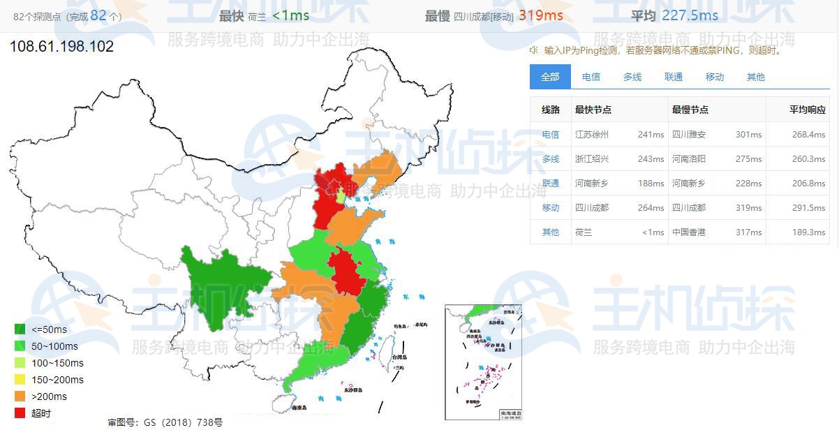 Vultr荷兰机房地理位置距离大陆远,平均延迟在227ms左右,这也符合欧洲服务器在大陆地区延迟较高的特性。荷兰本地区延迟最低,不足1ms,所以要是部署欧洲外贸业务,则可考虑租用延迟低的荷兰VPS服务器。