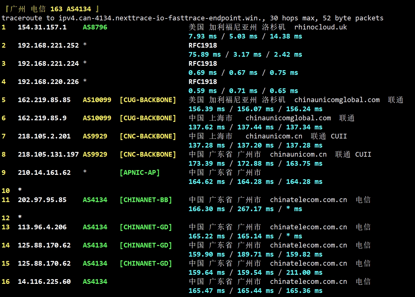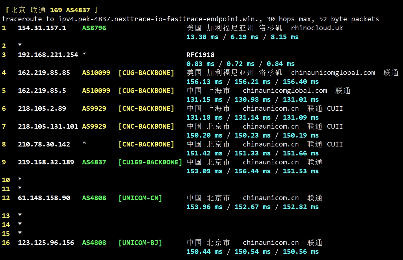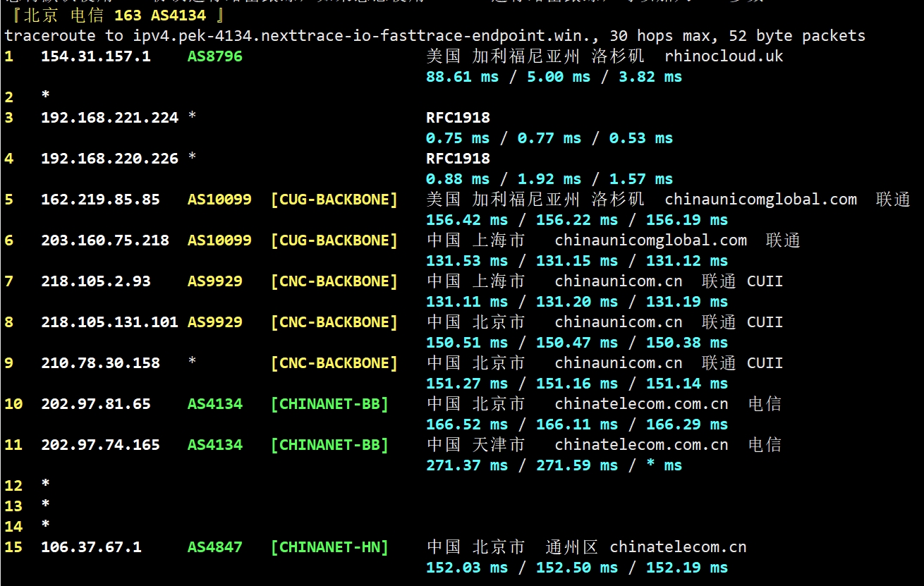电信回程:强制走的是联通的高端AS9929链路回国的