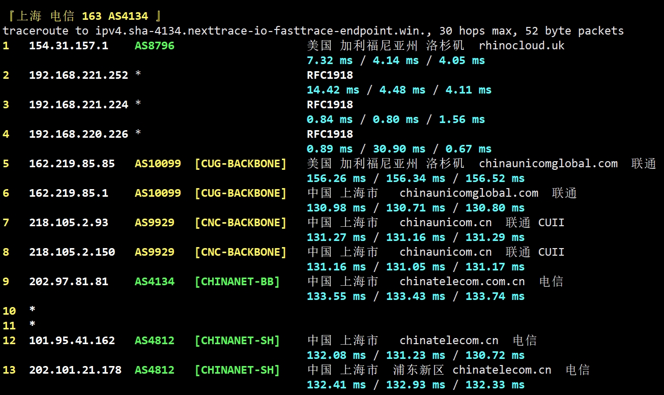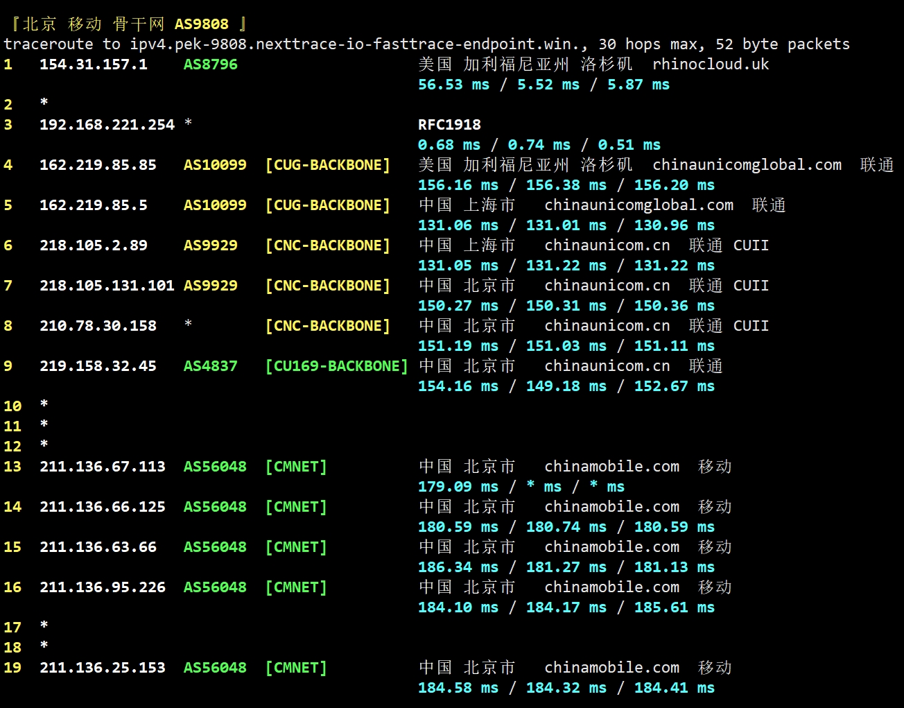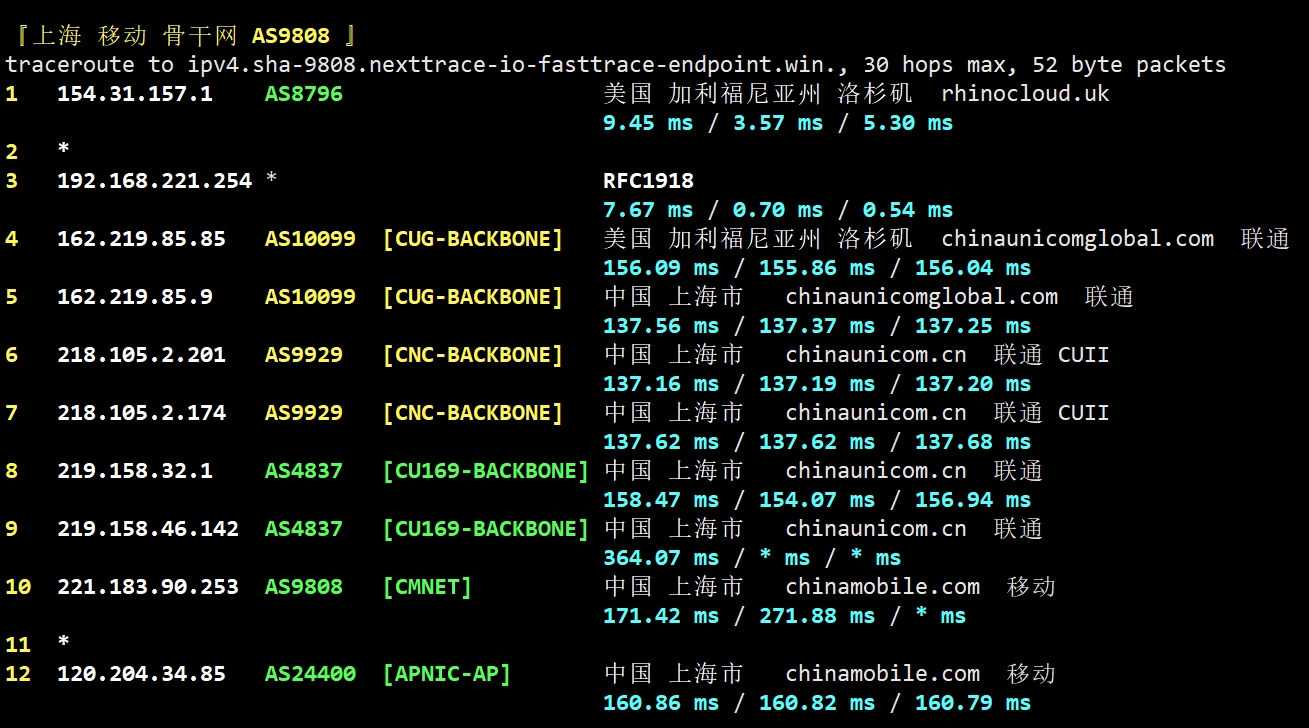电信回程:强制走的是联通的高端AS9929链路回国的