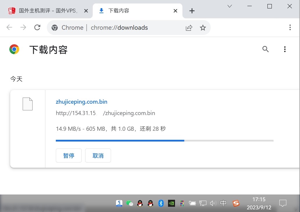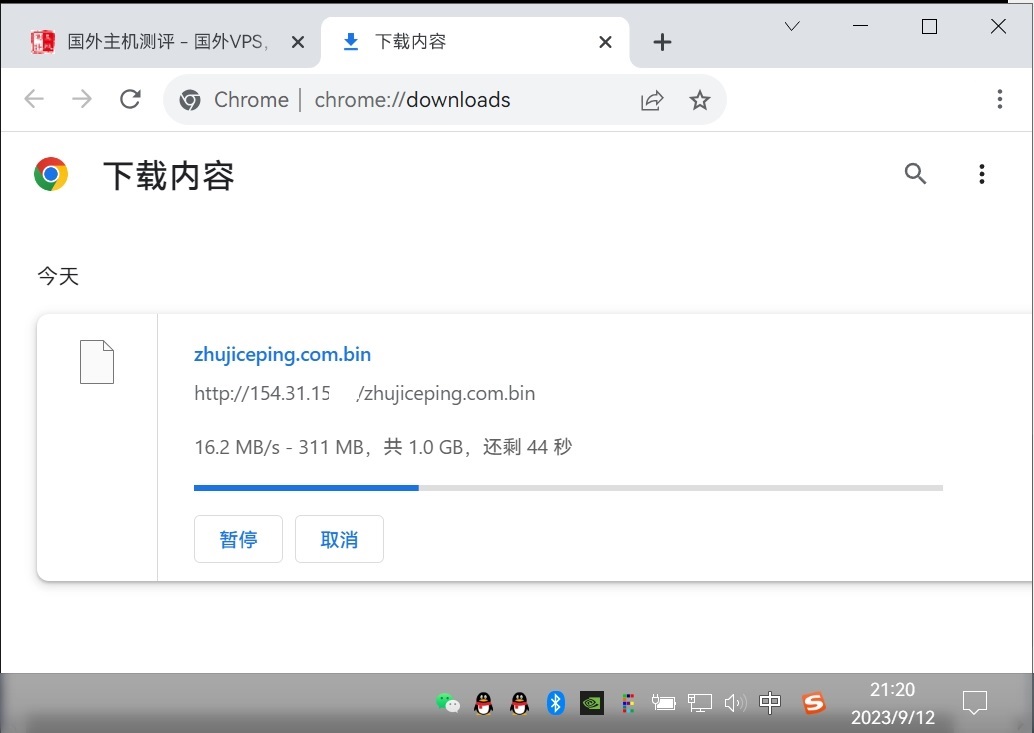 存放在测试VPS上的文件,广州联通家庭网络,直接用浏览器下载,大致速度: