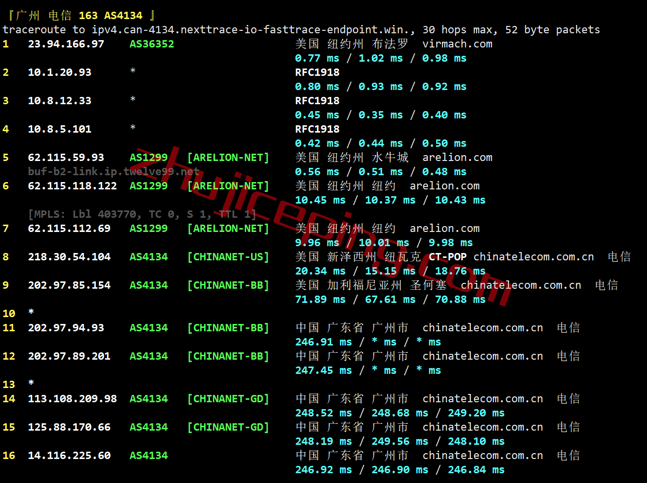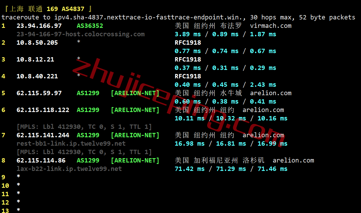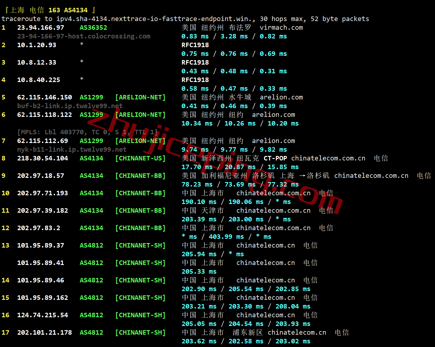 电信回程:纽约twelve99接新泽西纽瓦克电信的pop然后直接到电信圣何塞/洛杉矶节点接着直连回国