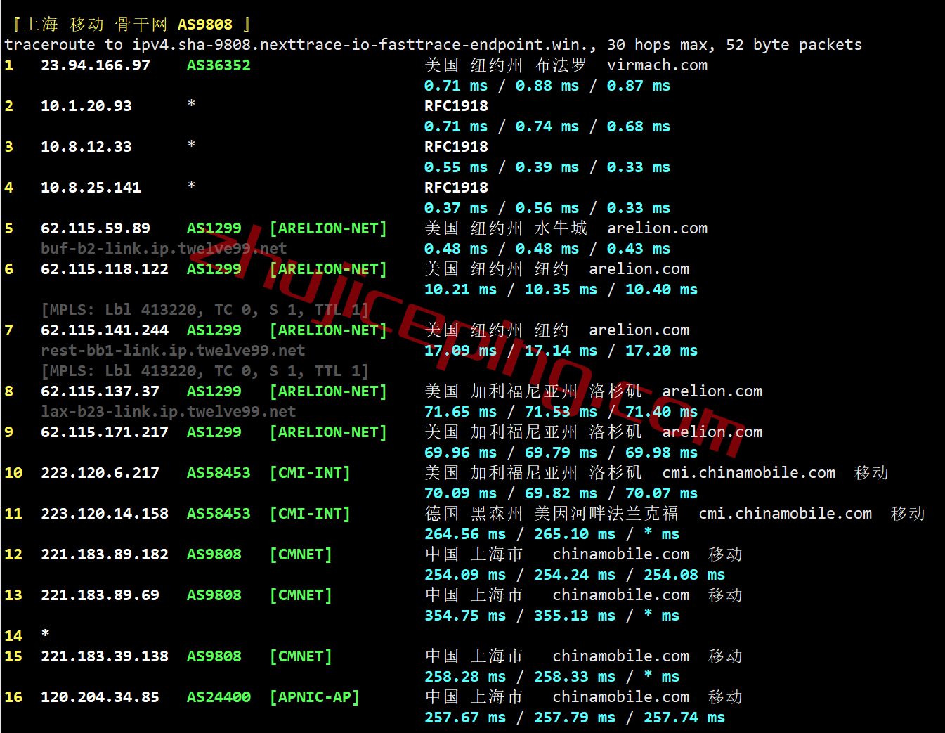 上海:走twelve99刀洛杉矶,然后从移动洛杉矶节点直连回国