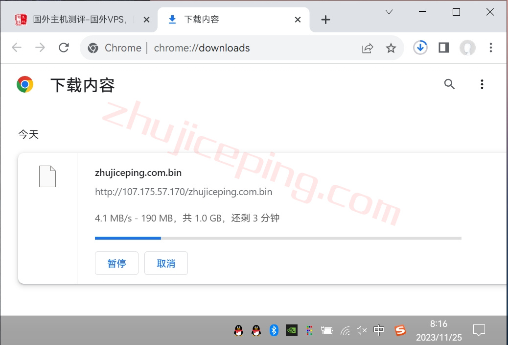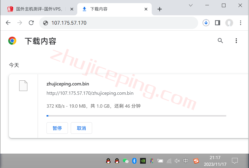 存放在测试VPS上面的文件,广州联通直接浏览器下载,大致速度: