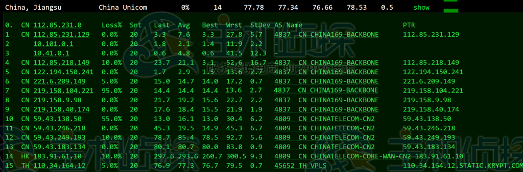 小结:iON新加坡机房云服务器在配置方面还算比较不错,在访问速度方面平均95ms,去程电信和联通都走CN2线路,回程三网都走CN2线路,总体来说适合国内用户选择。