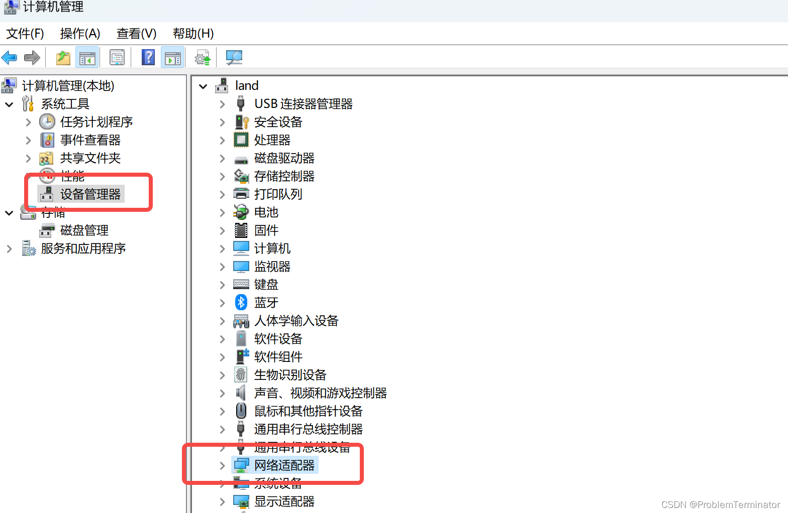 2.找到【网络适配器】,展开,选择当前网卡鼠标右键单击