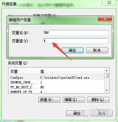 5、编辑用户变量窗口中,变量名不用修改,修改一下变量值即可,修改成:默认的%USERPROFILE%\Local Settings\Temp或D:\Temp也可以,当然其他可用的磁盘路径(非系统所在的分区磁盘),并依次点击底部确定按钮,保存设置;