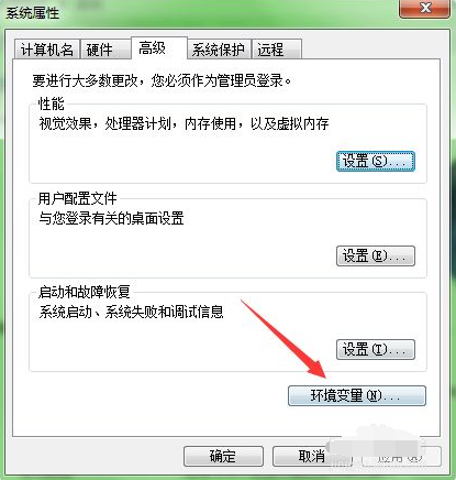 3、系统属性窗口中,切换到高级选项卡,然后点击最下边的环境变量;