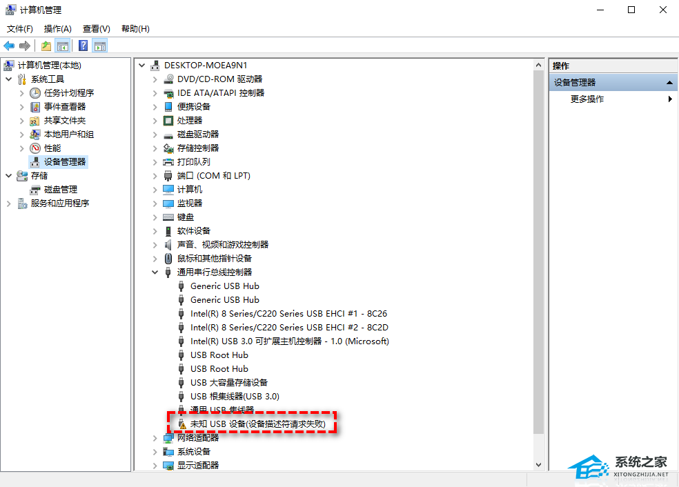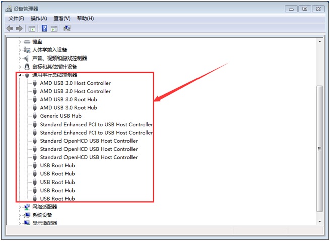 USB控制器其实是连接USB设备的接口,如果它出了问题,那么我们连接的USB设备在设备管理器中将显示无法识别的USB设备,所以我们可以选择重装USB控制器来尝试解决问题。