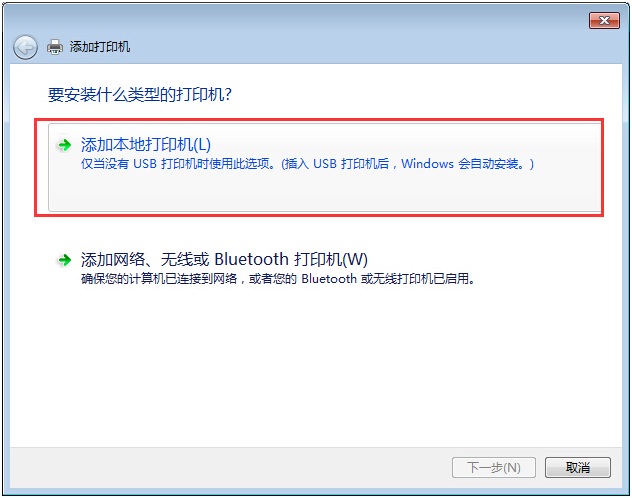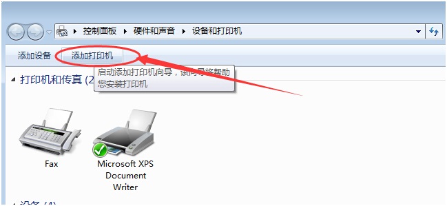 1. 打开“设备和打印机”,然后从菜单中选择“添加打印机”: