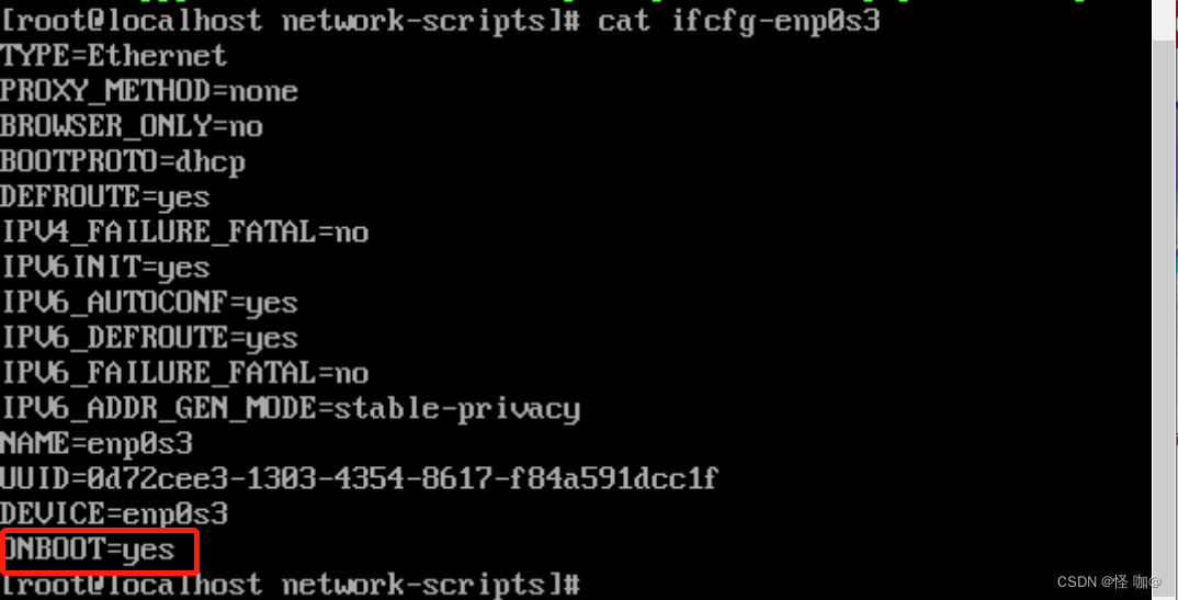 进入/etc/sysconfig/network-scripts/目录,找到enp0s3文件