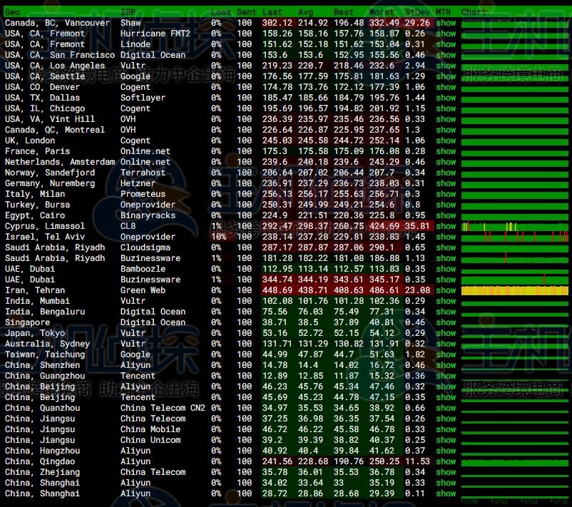 全球各地的网络稳定性还是比较不错的,几乎没有丢包的情况。