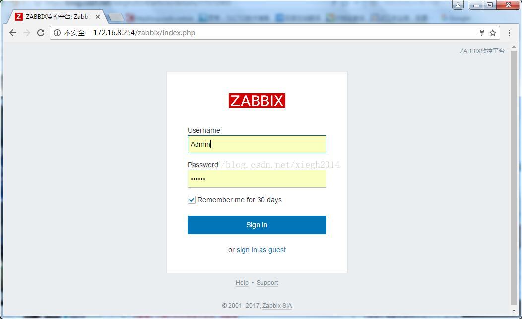 8、登录最新版zabbix3.4 默认用户admin 默认密码zabbix
