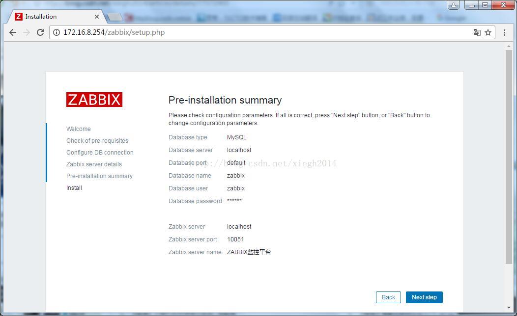 1、浏览器访问,并进行安装http://172.16.8.254/zabbix/